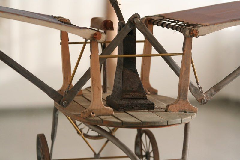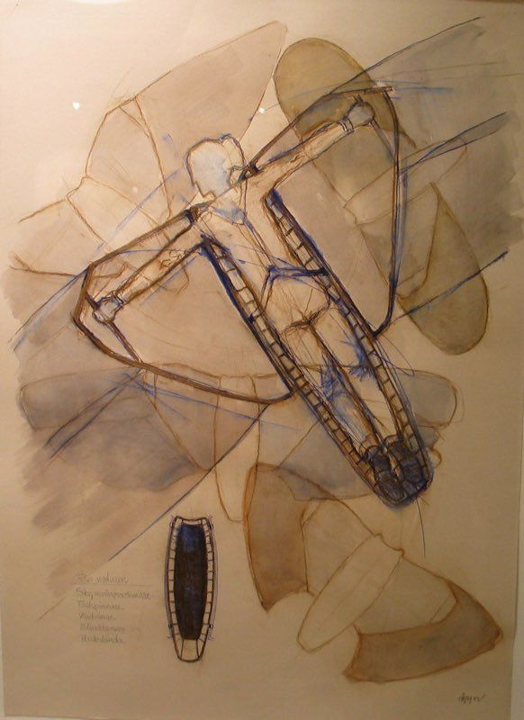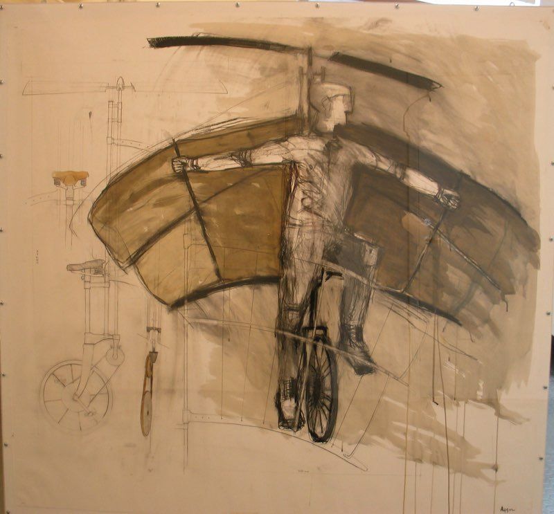 Ovannämnda utställning har vandrat runt i landet under flera år i Riksutställningars regi. Nu har jag fått hem mina skulpturer och tänker nu visa den i lite ny form då det finns tillfälle. För mig är fantasin viktig och drömmen om att flyga har funnits inne i mig sedan jag var en liten pojke. Jag har lekt med tanken hur man med olika konstruktioner och människan som kraft ska kunna flyga. Det blev ca 300 skisser i en bok som sen blev modeller och teckningar...